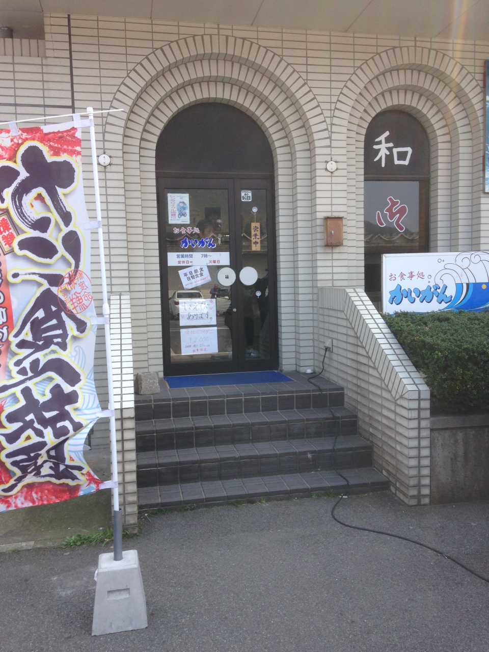 境港の港内にあるレストラン。新鮮な魚介類が売りで、多くの客でごった返していた。3月だったためかかに料理を注文する人が目立った。値段は決して高くなくお値打ち。かに以外にもたくさんの新鮮なメニューもある。他にも多くの店があり、さすがに境港らしい。