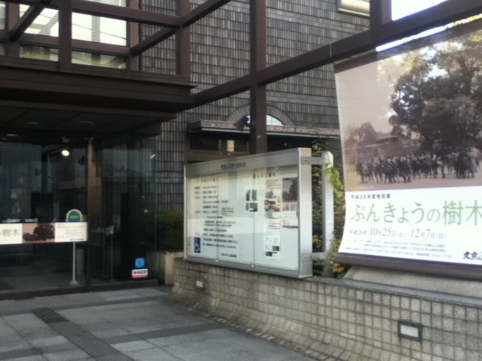 地下鉄本郷三丁目駅の西、本郷通りからやや細い北側の路地を入った処にある。建物は、細い柱を組み立てたものがある等、やや面白い感じもある。偶々、館内では、「ぶんきょうの樹木−いま・むかし−」の特別展が開催されていて、お客さんは結構来ていた。常設展では文京の歴史や近代の文人等が紹介され、特別展では地域ゆかりの樹木に関わった人物や出来事等が解説されていた。初めて聞いた事も少なくなく、楽しく見ることができた。特に文京の歴史や文化に関心や知識がある方には、訪問することをお勧めする。