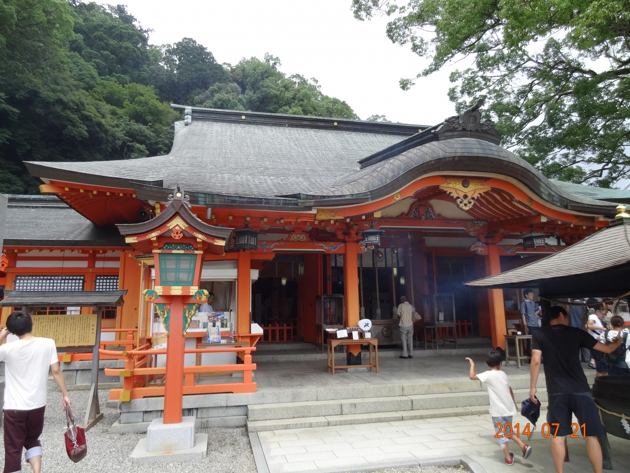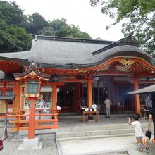 熊野三山の中で、那智の滝に近く朱塗りの社殿が美しい。他の本宮大社や速玉大社のように横並びになっていないのが特徴。すぐ隣には、西国三十三カ所の第1番札所である青岸渡寺があり、神仏習合の形になっていてめずらしい。