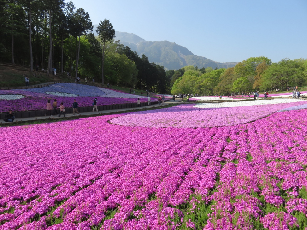 西武線のポスターを見ていたら、満開情報が出ていたので、早朝から車で出かけました。現地に7時半ぐらいに到着しましたが、公園内の駐車場は規制のため入れず、臨時駐車場(500円)で無事に駐車完了。此処から無料の送迎バスで公園内に入り公園内のバスロータリーから徒歩で公園の入り口に、7時59分くらいに到着。係りの人が「ここまで、ここまで」と言って我々の数名後ろで、人を分けている様子でした。入り口で入場料を払おうと一人300円を握っていたのですが、8時前なので100円以上の協力金を箱に入れてもらえればいいですとのことでした。公園内は それなりに人が入っていて少し込み合っていました。エリアごとに咲く時期を調整しているようで、エリアごとにばらついていました。係りの方々が、丁寧に雑草や枯れた花の撤去など手入れをされていました。此の方々のおかげで、綺麗な芝桜を堪能できました。9時半ぐらいには駐車場に戻りましたが、送迎バス待ちの列が長くなっていました。今回は 時間が早かったので見られませんでしたが、12時15分に西武秩父駅付近(秩父鉄道の御花畑駅)を熊谷方向からC58(蒸気機関車)が走ってきます。