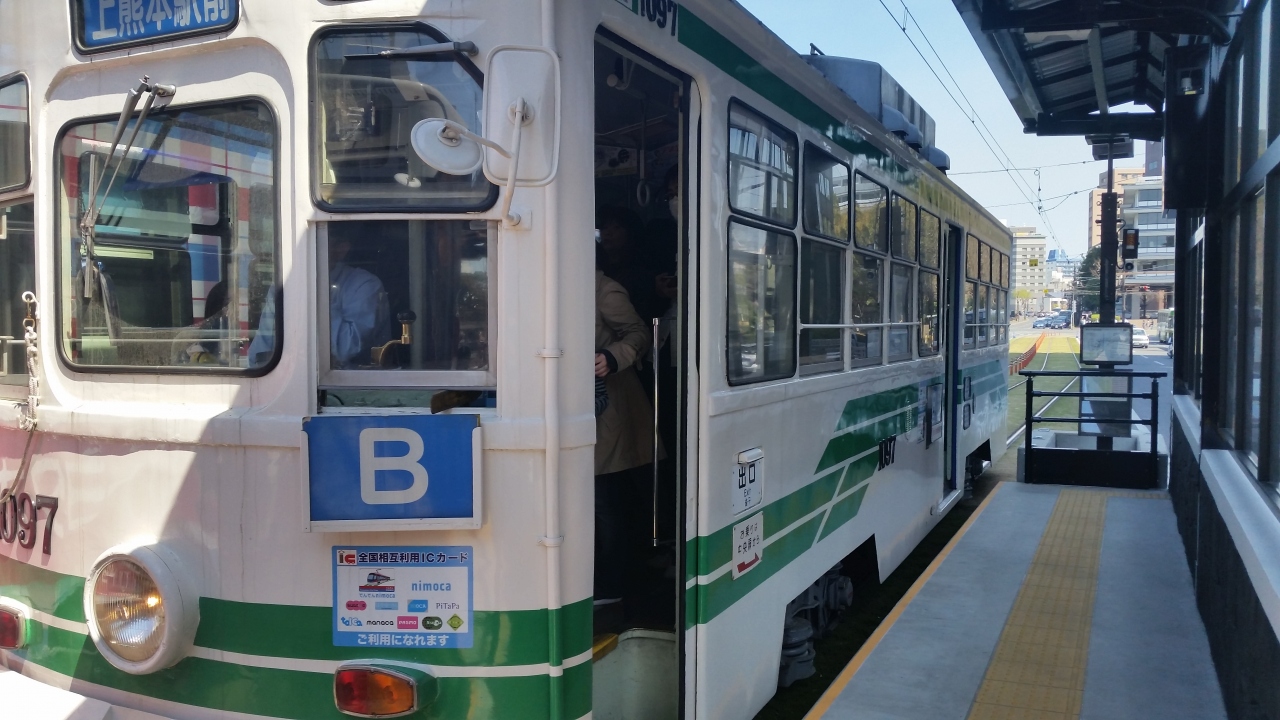 熊本市内の移動といえば、チンチン電車です。地元の人も普通に使用しています。