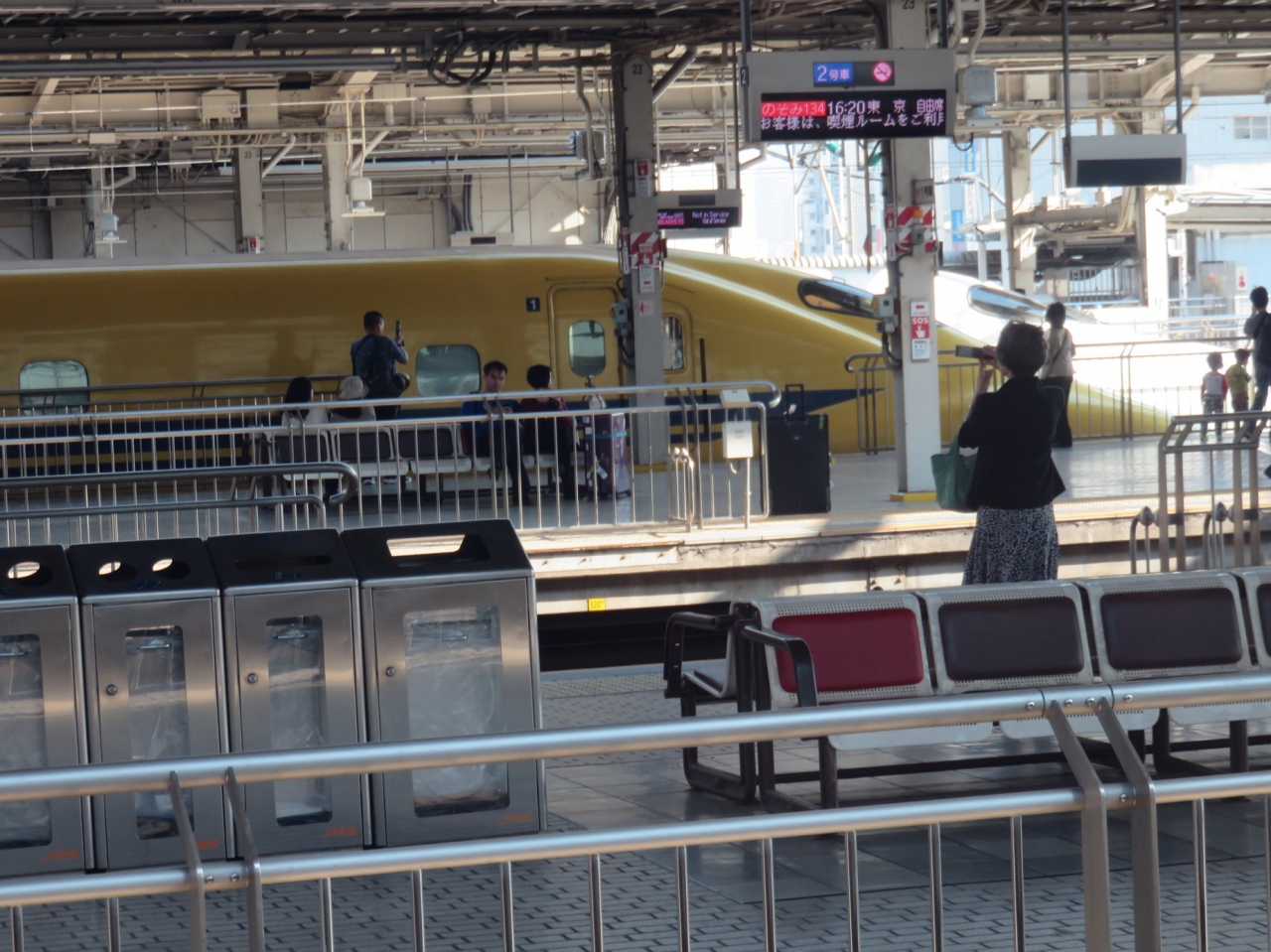 本日は仕事が思いのほか早く終わってしまい、新幹線で帰ろうと思い自由席の大好きなA席に座り、窓越しに外を見ると変な色の新幹線が・・・あ!ドクターイエローが止まっている。パニック状態になりながら、カメラを取り出して撮影しました。一つ奥のホームに停車していたため良く撮れませんでした。もう、生涯見ることはないかもしれませんね。