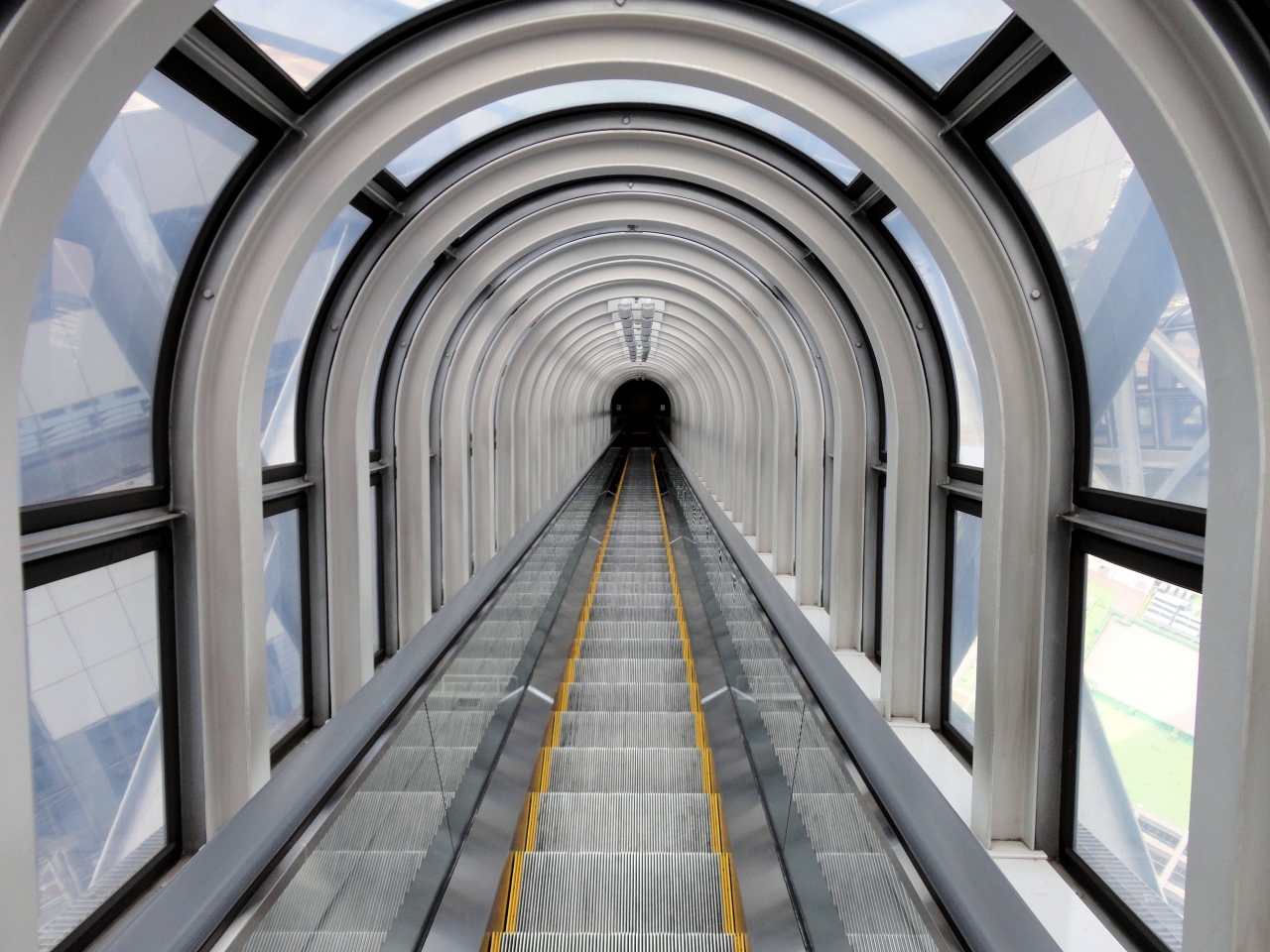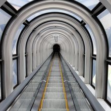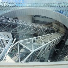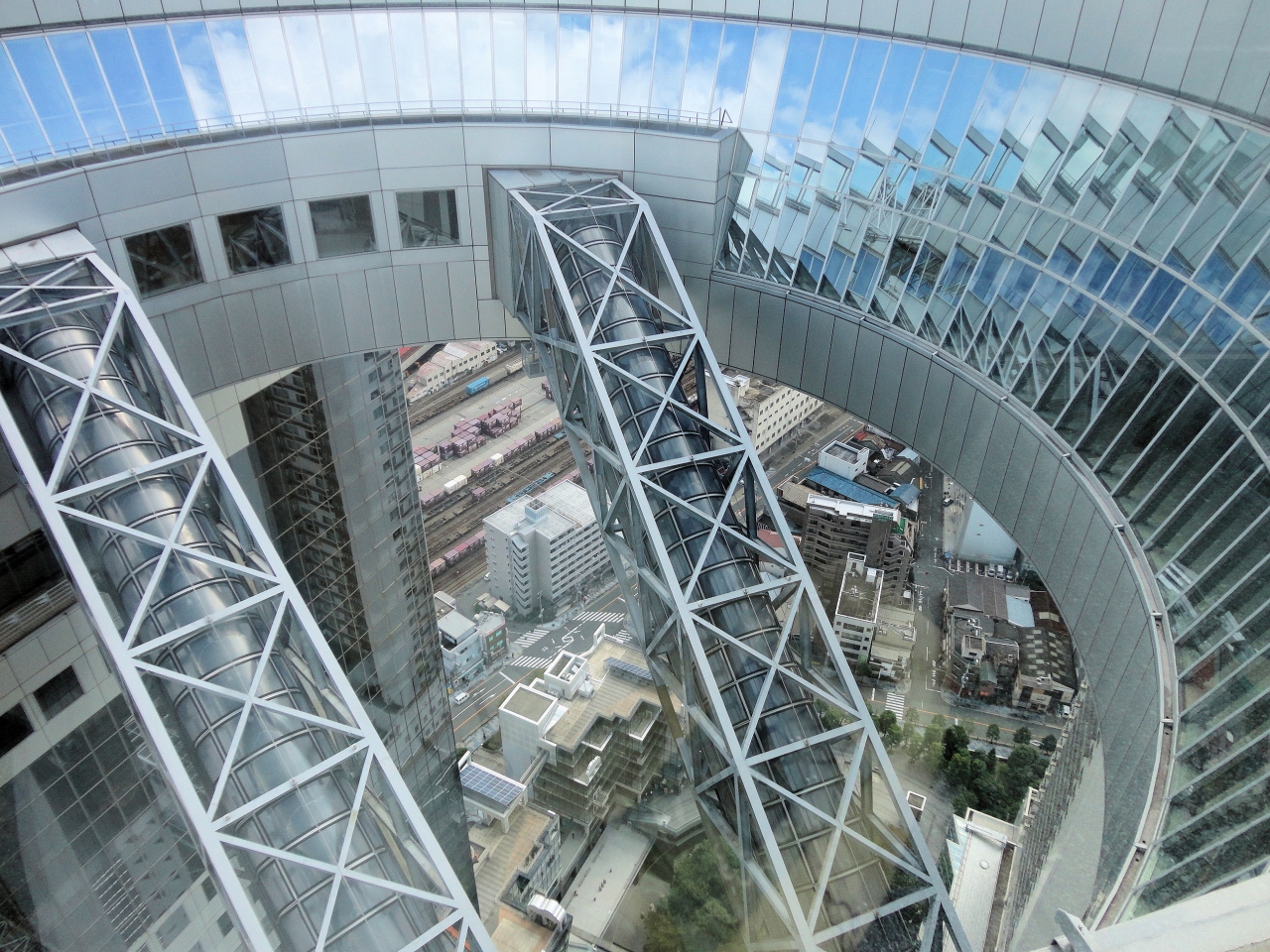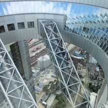 40階建てのビルを上部でつなぐ空中庭園は、地上で