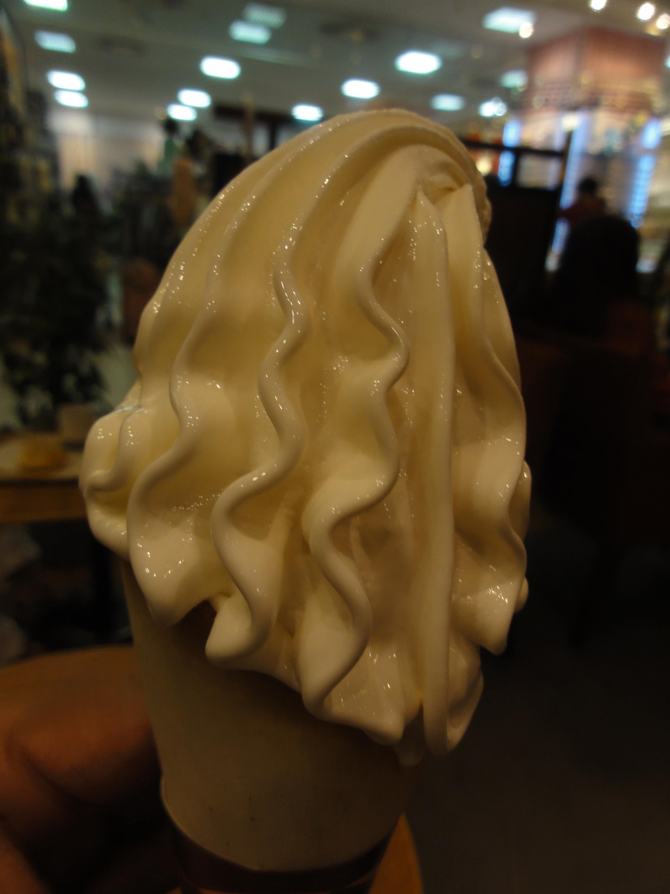 ¥500のソフトはなめらか、コーンも美味しかったです。でも、クリームが軟らかすぎて溶けやすい!ゆっくり味わって食べてる間もないほど急いで食べました。