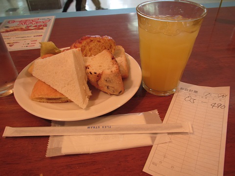 ツナサンドイッチが出ていましたが、これが野菜サンドならもっと良かったと思います。少し野菜が食べたかったです。