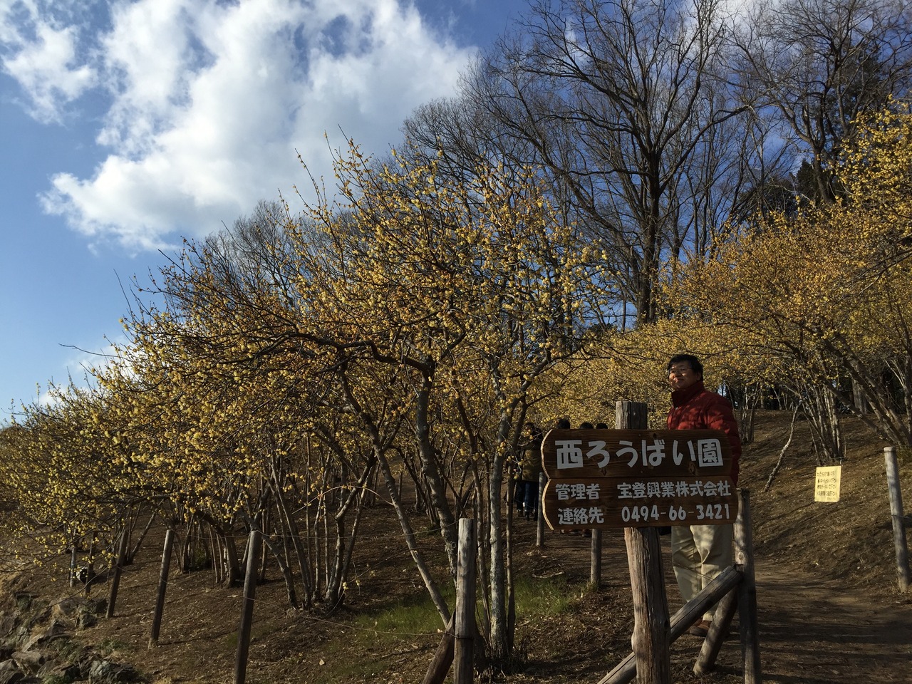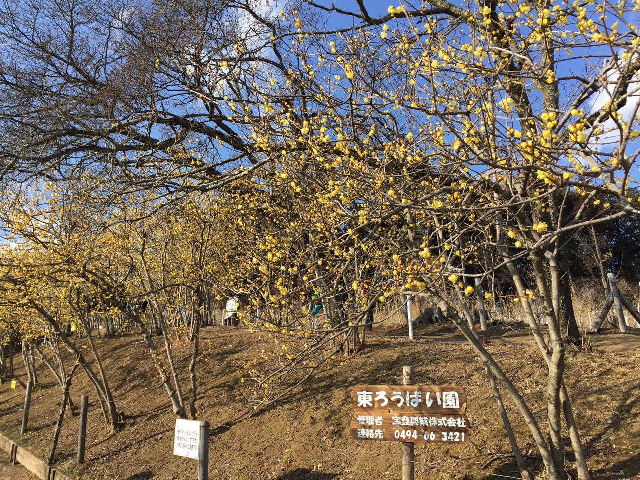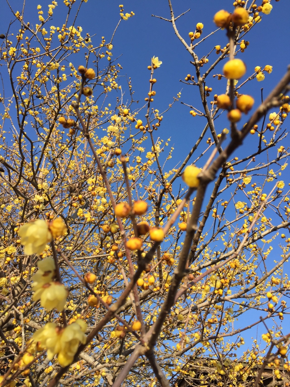 蝋梅園は ちょうど見頃で 青空と蝋梅の黄金色が相まって本当に美しい。