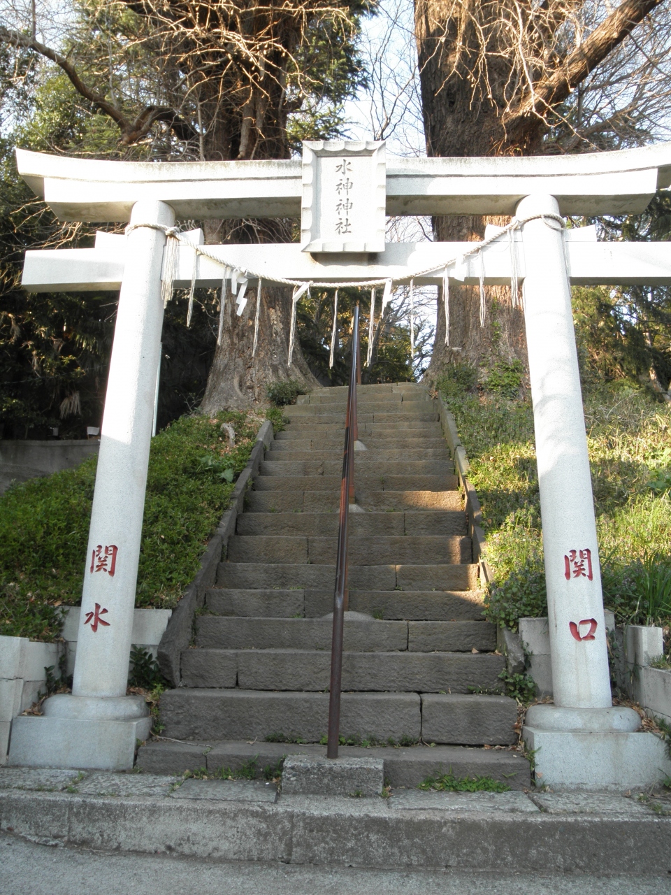 神田川にかかる駒塚橋から目白通りに向けてのぼる、胸突坂ののぼり口から、坂に沿ってある小さな神社です。急な石段をのぼると祠がありました。神社の中から胸突坂の上の方に抜けることができるので再度急な石段を降りる必要が有りませんでした。不思議だったのは、なぜか鳥居には「水神社」ではなく「水神神社」と書いてありました。