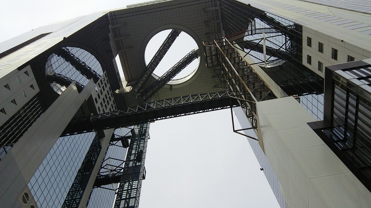大阪のランドマークの一つです。2棟のタワービルが上層階でつながっている独特のフォルムはなんとも不安定な気がしてドキドキします。大阪駅からでもすぐに見つかります。ビルの外壁が鏡のように他のビルを映し出しており、陳腐な表現ですが近未来的なイメージがあります。