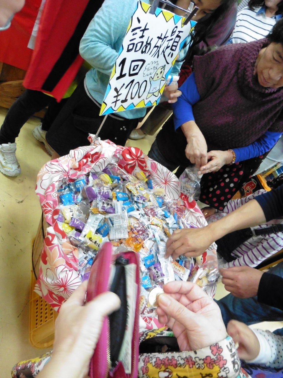 土日は運がよければ、野菜詰め放題、お菓子詰め放題といったイベントもやっています。