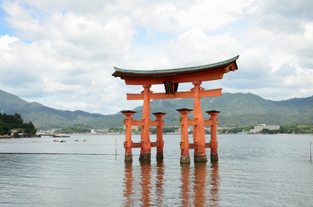 フェリー乗り場から右方向に進むと、すぐに厳島神社の鳥居が見えてきます。