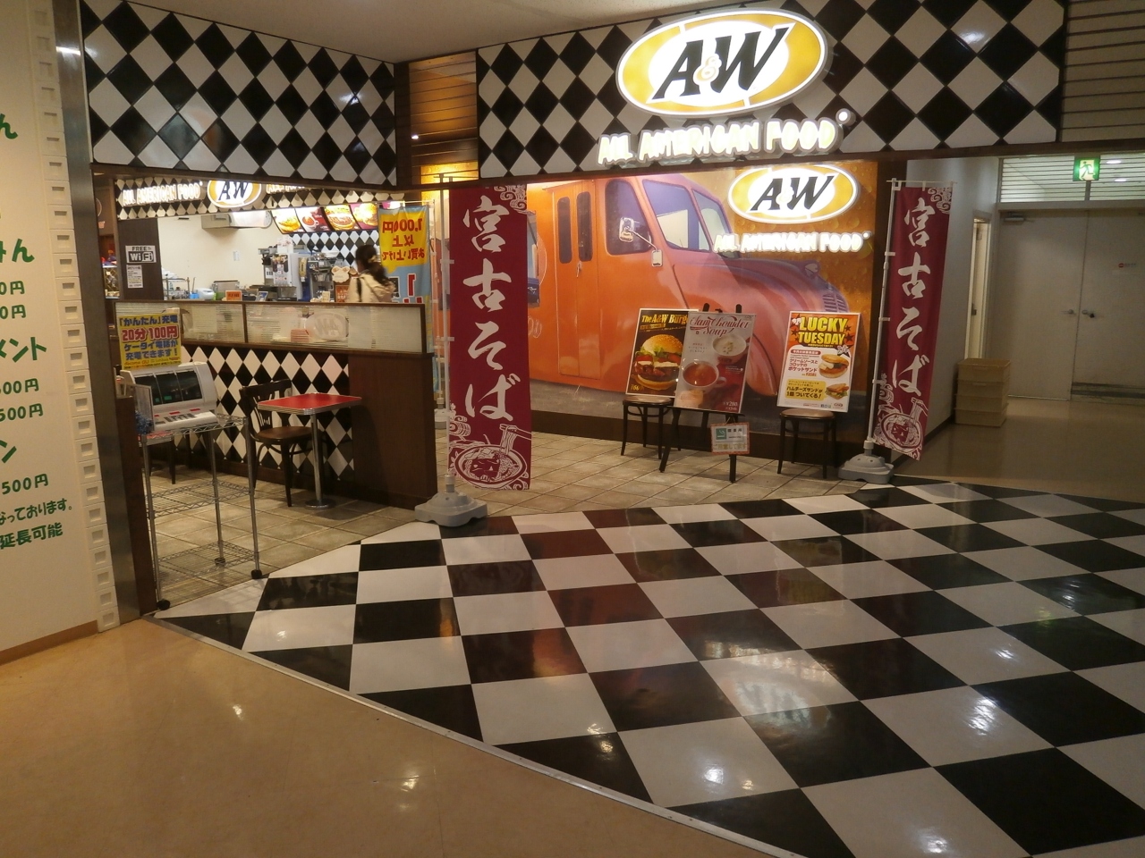 JALちゅらナビクーポンやBBクーポン利用可能、宮古空港内にある沖縄限定のハンバーガー屋さん 宮古そばもあり??? ~A&Wバーガー 宮古空港店~