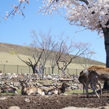 車ならもっと頂上のほうまで行けるようですが下のほうで鹿と戯れるのも