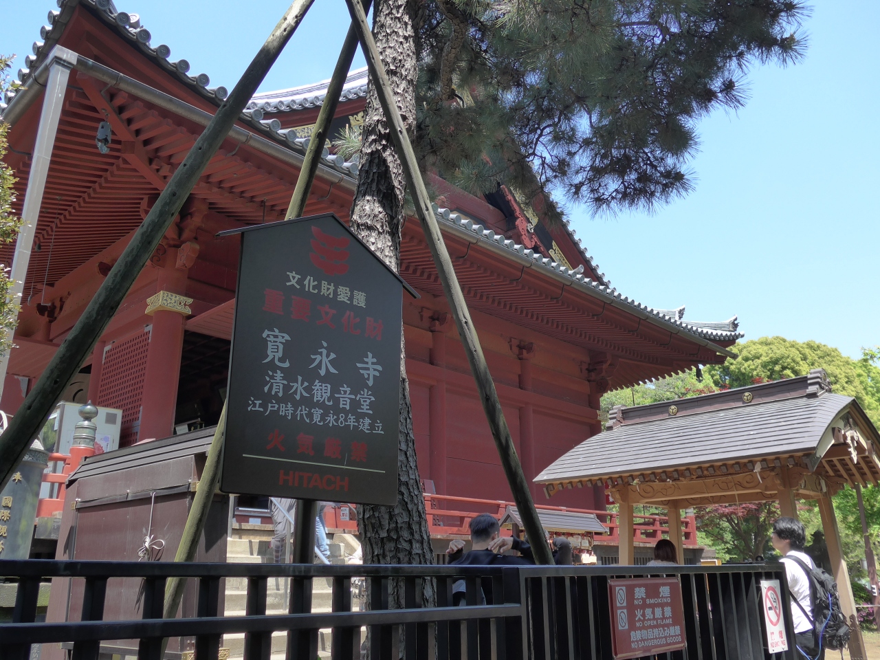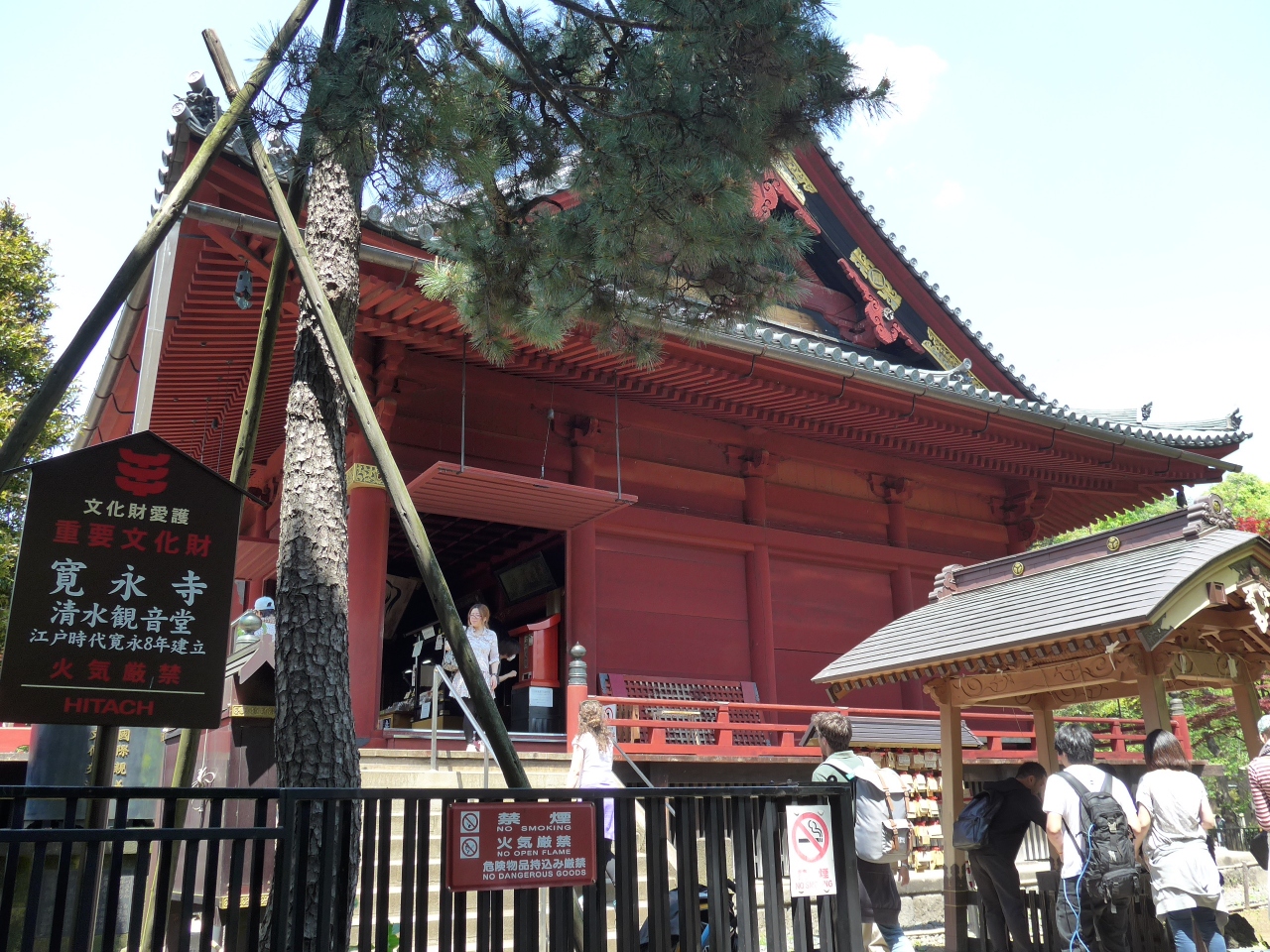 清水観音堂は寛永8年(1631)に上野の山の中ほど摺鉢山(すりばちやま)に建てられた。後に元禄7年(1694)、現在のところに移っている。本尊は比叡山の恵心僧都の作といわれる千手観音菩薩である。堂は安永年間に改築しているが、古色そのもの、上野の戦争、大正大震災などいく度か災火にせまられながらも難をまぬがれて残り、建物は重要文化財の指定をうけている。