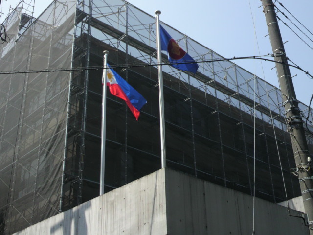 以前の旅行で訪れたフィリピン大使館に再び行ってきました。外装工事中でした。