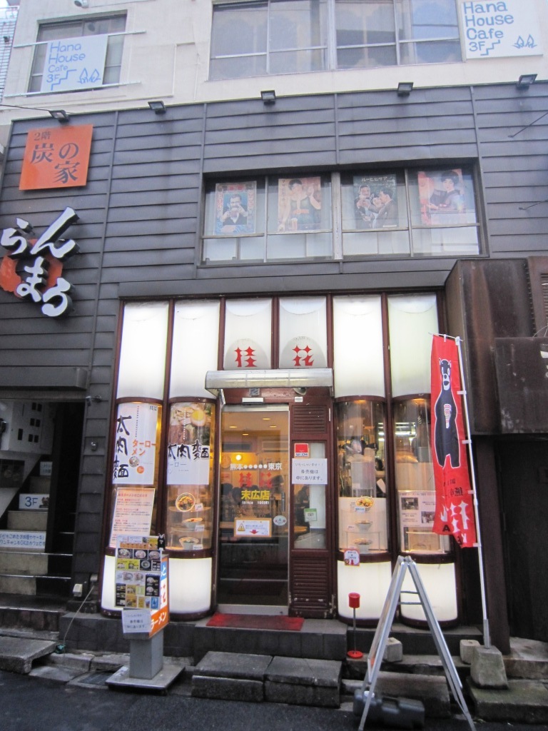 新宿三丁目交差点から裏道を入ったところにあります。無名だった熊本ラーメンが東京で始めて店を構えた所だそうです。数年前倒産の話がありましたがその後復活、久々に訪れて頼んだのは、もちろん名物「ターロー麺」です。口の中でとろける大きな肉としっかりした食感の太麺、濃い豚骨、たっぷりキャベツのコンビネーションはとても美味しいです。