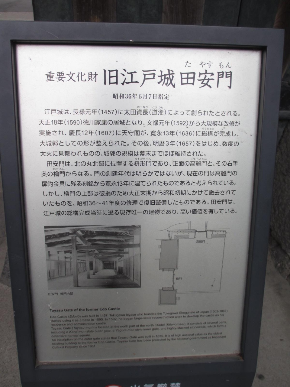 九段下駅から日本武道館に行く際、地上に出て靖国通りの九段坂を登り、左折して田安門橋を渡るとこちらの門をくぐることになります。私は、日本武道館でのライブに行く際に、こちらの門をくぐるといよいよライブだという気持ちになりワクワクしてきます。