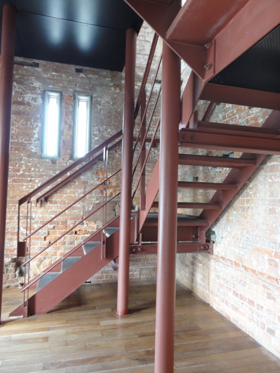 旧門司税関は外から見ると、レトロな外観の大きなレンガ作りの建物です。中に入ると建築当時からある年代を感じさせる壁や床のほか、近代的なデザインの鉄骨や床面もあり、良く見ると内部から補強して外観を保っているのが判りました。