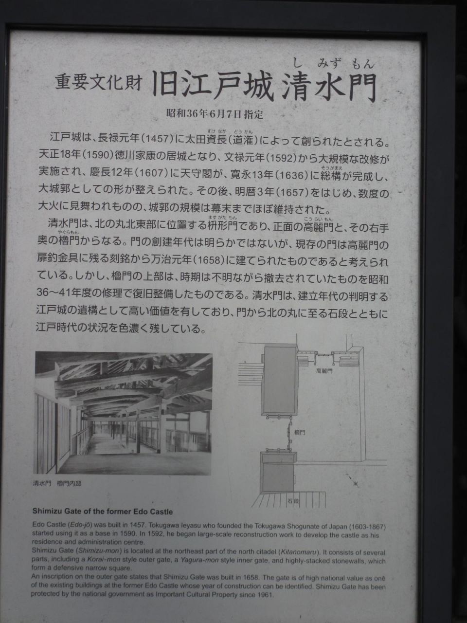 九段下駅から日本武道館や北の丸公園に行く人のほとんどは田安門を通りますが、こちらの門からも行くことができます。現在の門は1658年に建てられたと考えられているそうです。石段も昔のままという感じで、雰囲気を味わうならこちらの門を通ることをおすすめします。ただし結構段差があり、急な石段を登ることになります。