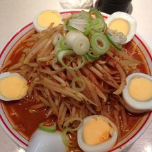 蒙古タンメン中本の味噌らーめんです。麺の多さもそうですが、肉野菜の多さにもびっくりのらーめんです。当然、辛さは、上から2番目の辛さなので、ごはんと一緒に食べる事をお勧めします。ぜひ、一度、味噌らーめんを食べに行ってみてください。