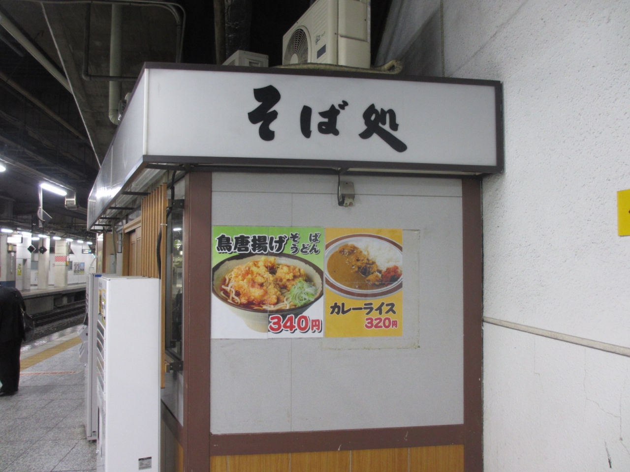 私が知っている中で最も安い駅そば店だと思います。かけそばが230円、カレーライスは310円という安値です。1番線は下り電車のホームなので、夜遅くまで利用者が多いからでしょうか、23:00までお店が開いているのも嬉しいです。