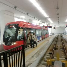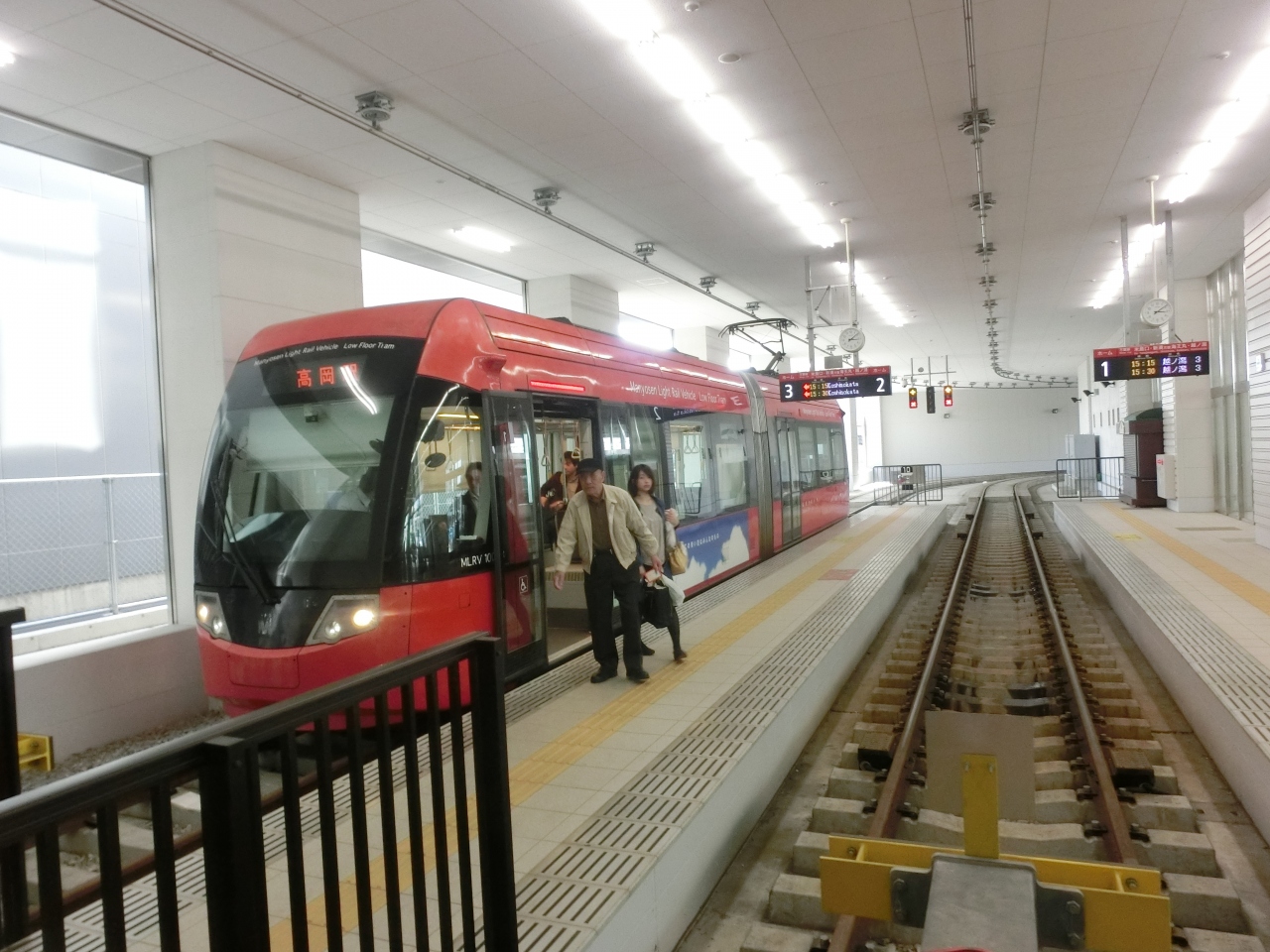 高岡駅停留場と射水市・六渡寺駅を結ぶ路面電車。