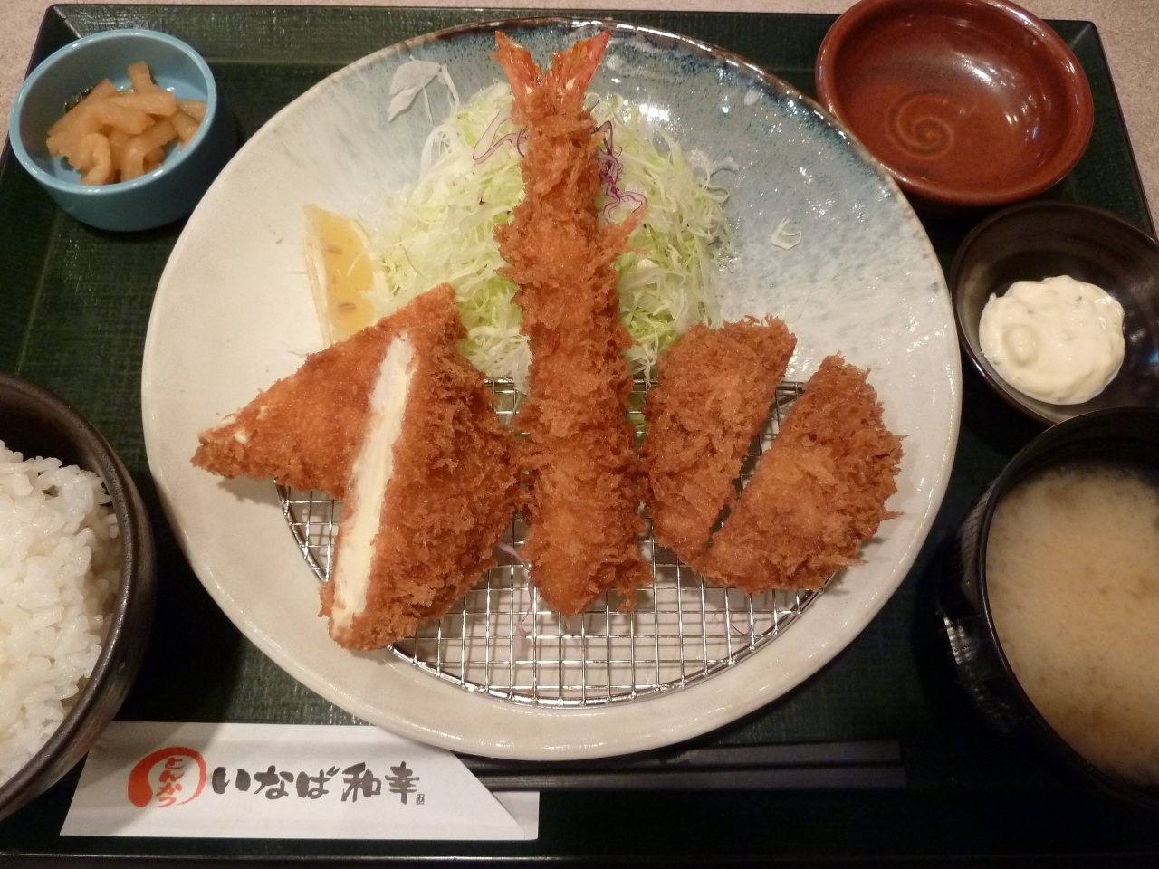 チーズチキン・ヒレカツ・エビフライのミックス定食をいただきました。