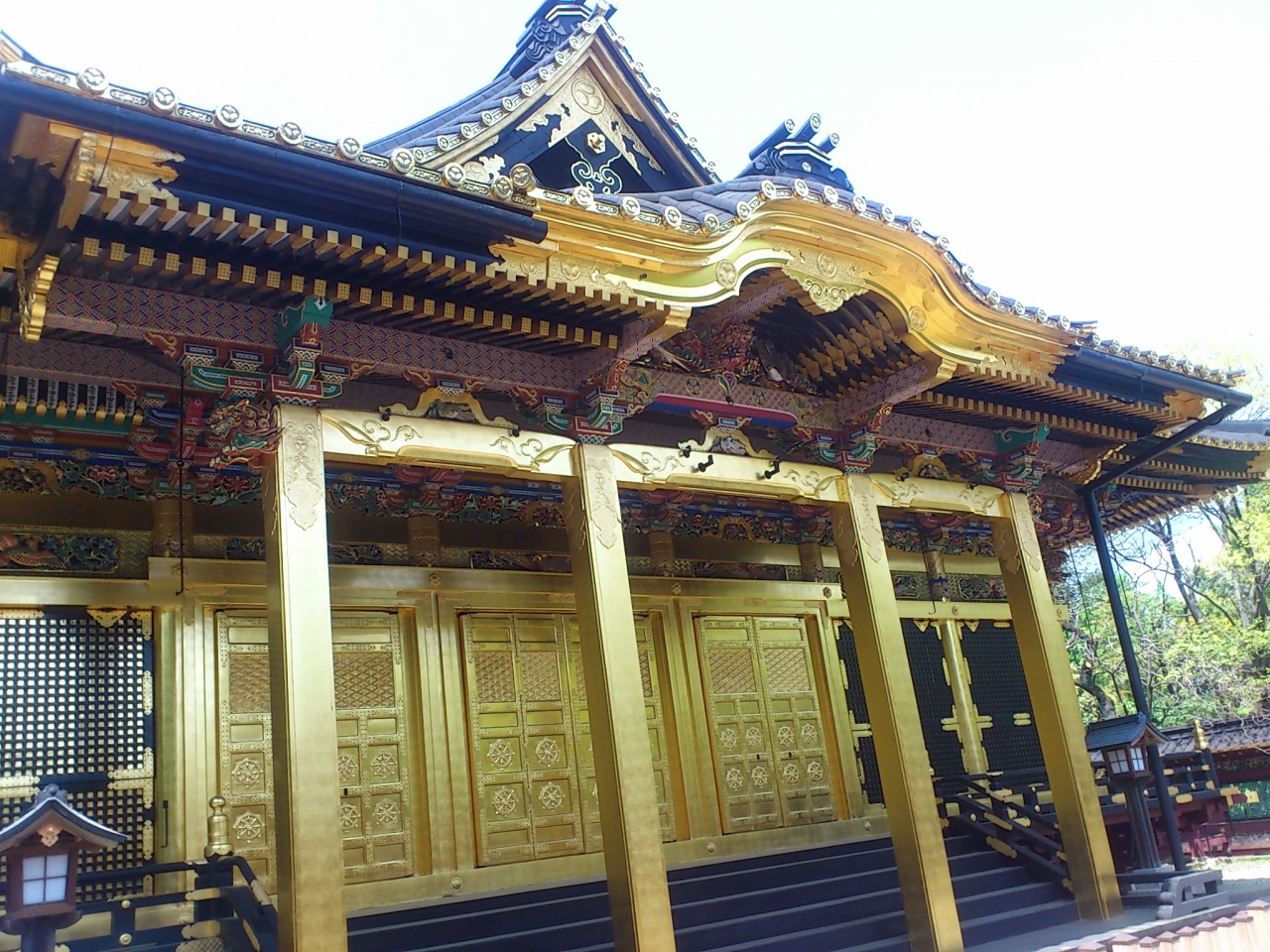 上野東照宮の唐門の前までは無料ですが、本殿に入るには参拝料500円が必要です。唐門の左側に入口があり、そこを入ります。唐門も金ピカですが、この本殿もそれにも増して金ピカです。洒落た感じの透塀に囲まれていますが、それとは対照的です。徳川幕府の威信が掛かっているので、すごいものを作ったものです。