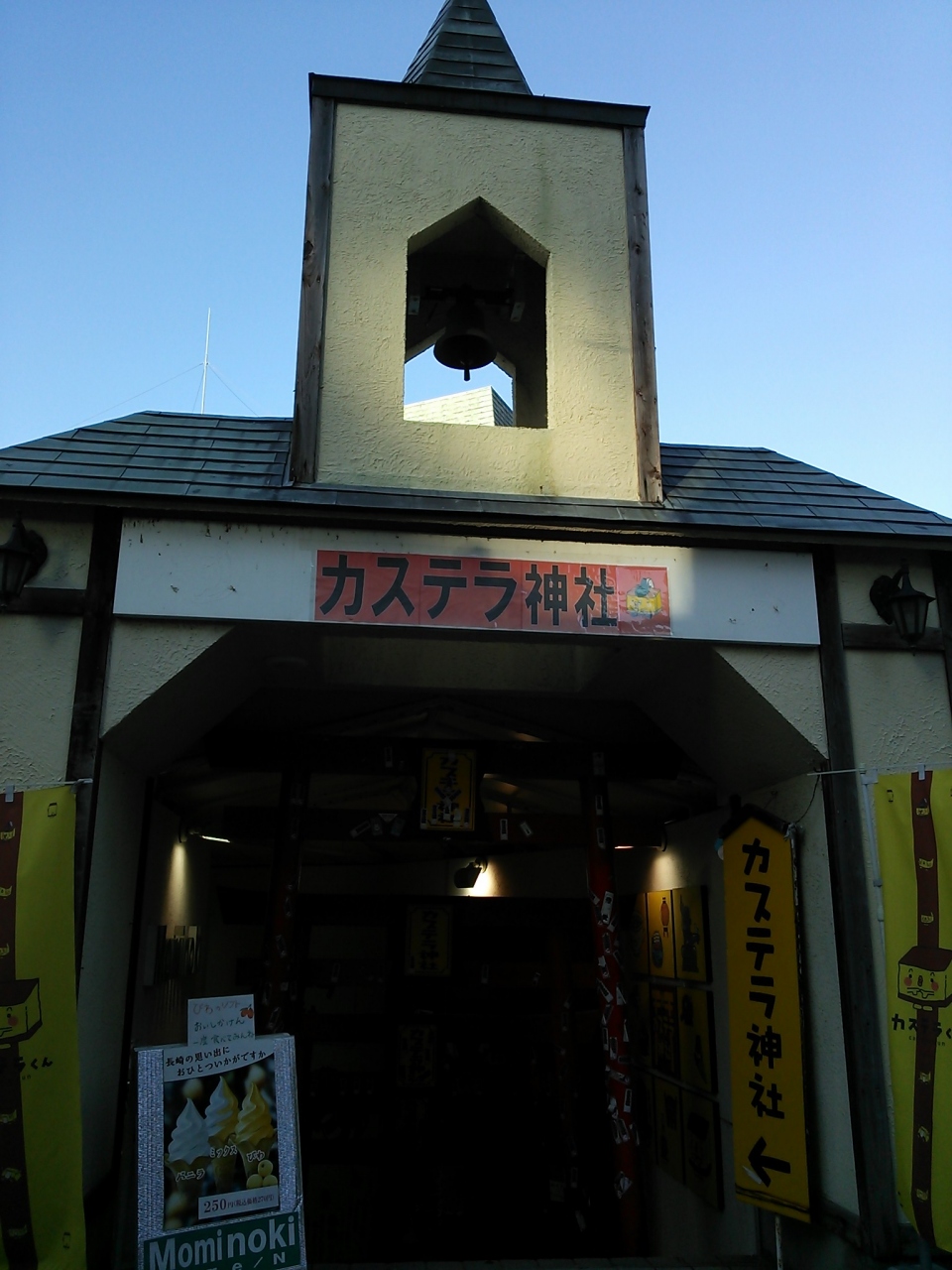 なかなか目を引く建物で、黄色い壁はもちろんカステラ、屋根の茶色もカステラの焦げを模したものだというのはわかります。