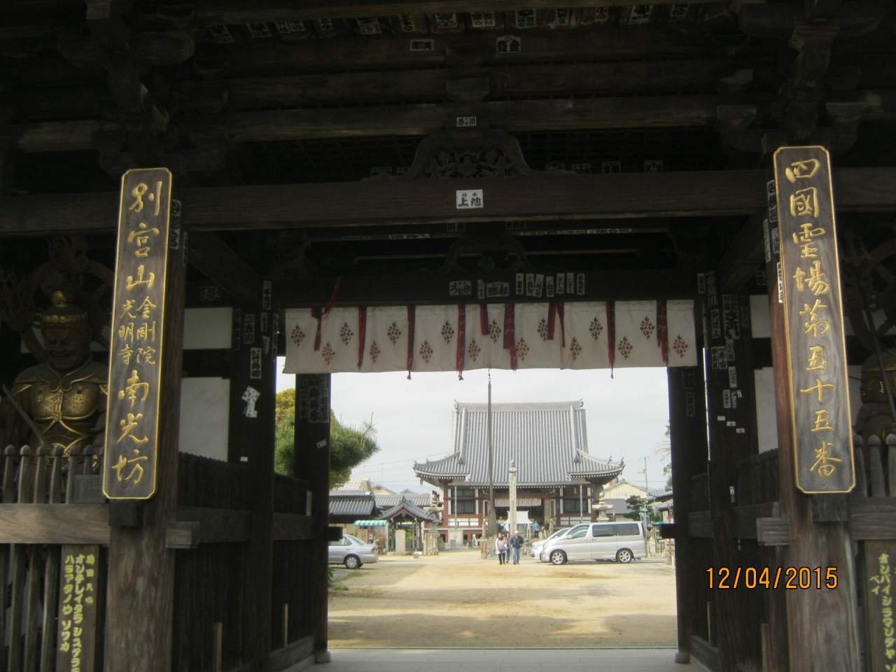 今治駅から北に10分程度です。山門は北の海に面したほうにあります。四国八十八ヶ所の55番札所です。町中にあるのは珍しいのでしょう。この寺の本堂は古さを感じますが普通の感じです。しかし山門が壮大です。本堂との対比ですごすぎます。