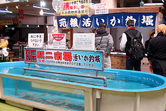 建物中には、名物の活イカ釣り掘なんかもありますw