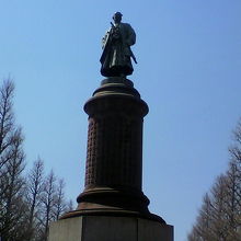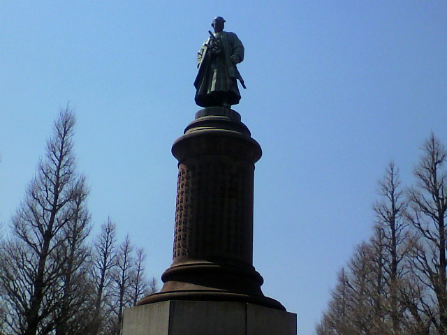 靖国神社の入り口付近に立つ大きな大きな銅像。見上げるほどで顔立ちなどはあまり見えません。