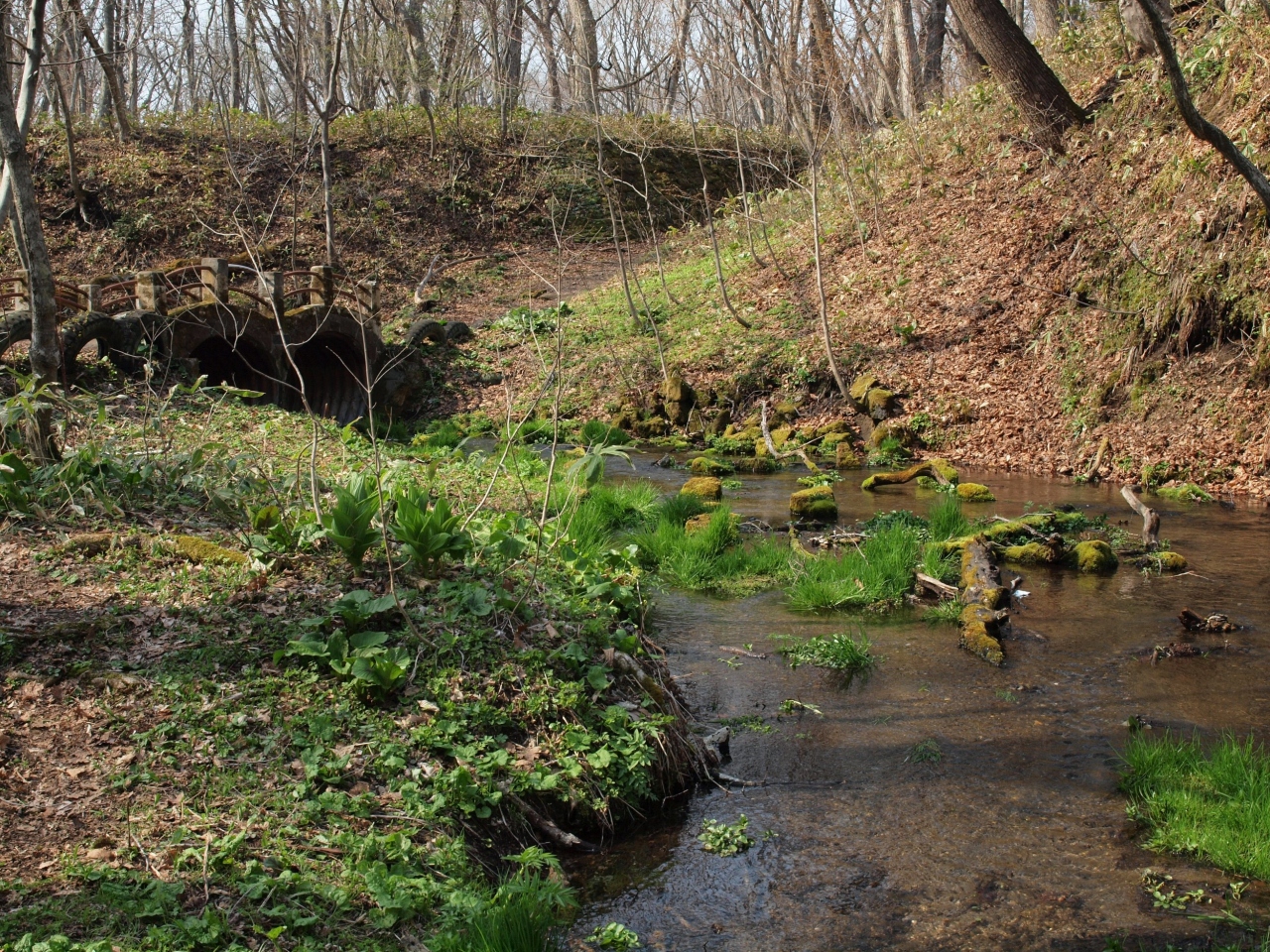 4月末、まさに春真っ盛りの公園には、エゾエンゴサクを始め、エゾイチゲ、ニリンソウ、エンレイソウ、ナニワズなどスプリングエフェメラルと呼ばれる可憐な春の使者たちが林床を彩っています。
