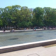 東京都美術館と東京都科学博物館に挟まれた場所にある噴水広場です。もともとは戊辰戦争で焼けてしまった寛永寺の根本中堂があった場所です。平成21年からの改修により新しく綺麗になったそうで、天気が良かったこの日は家族連れが憩いでいました。常時噴水が出ているわけではないようです。