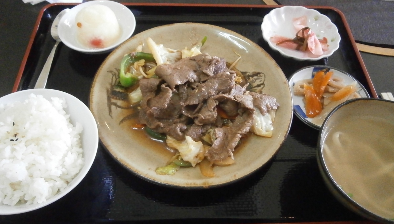 昼食に立寄り、名物だからと伊江牛焼肉を注文。