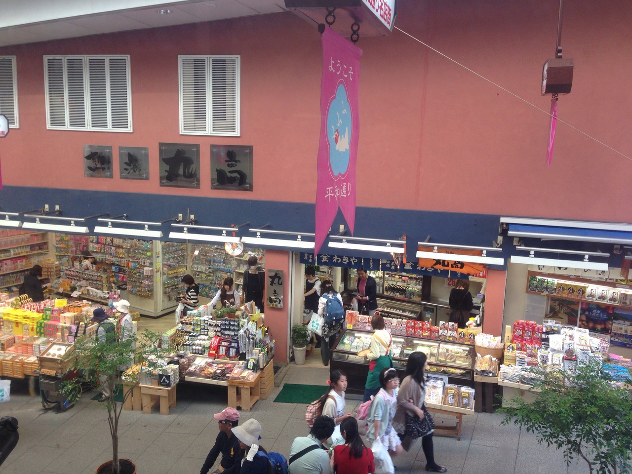 お土産屋さんがずらっと立ち並び、お客さんやお店の人たちの声で活気がありました!
