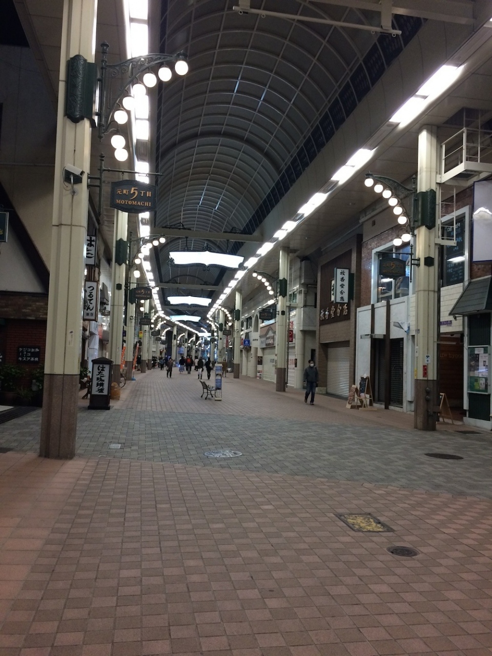 こちらの商店街もモトコー(元町高架下商店街)と同様に西に行けば西に行くほど、ひっそりしてしまうのですが、古美術などが好きな方はぜひ西まで行かれたほうがいいです。西の方にいいお店がありますから。また、街灯がすずらん状になっているのは戦前の様子を復刻したもの。風情あるいい商店街です。