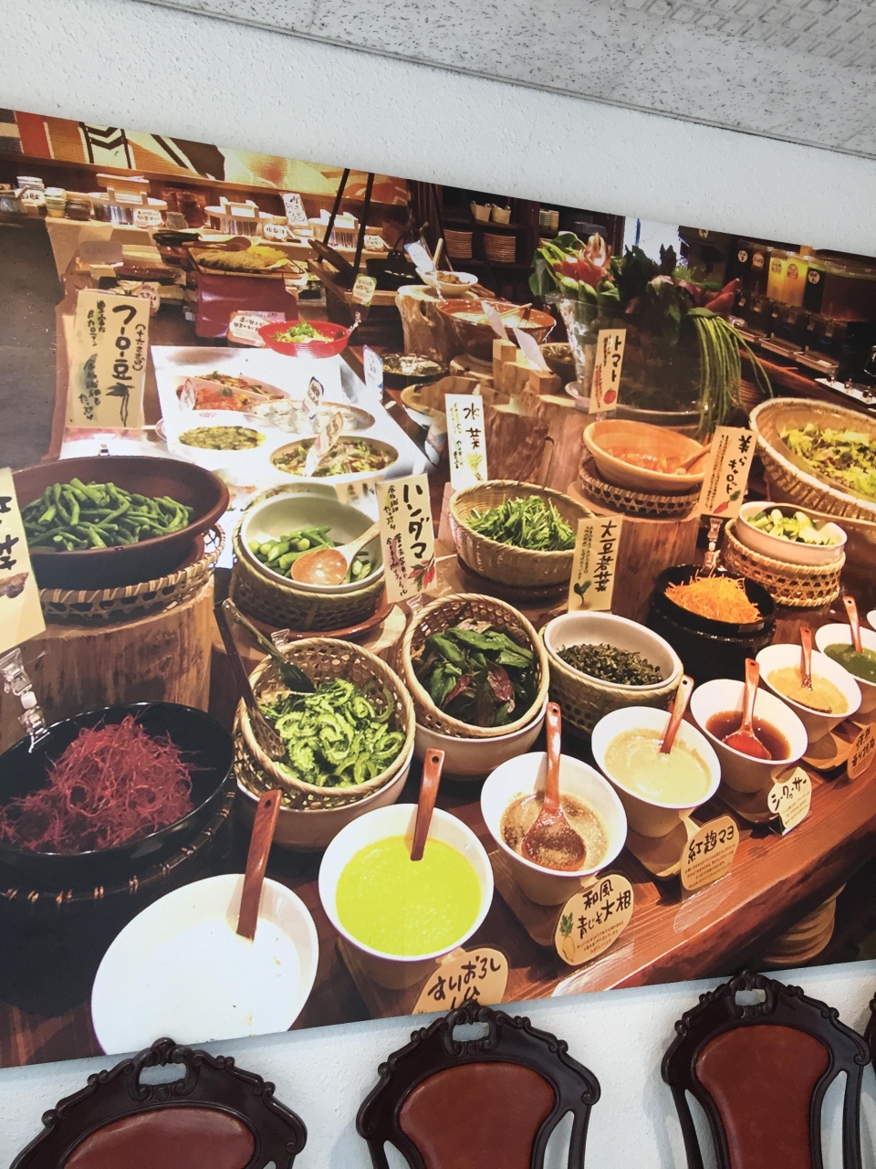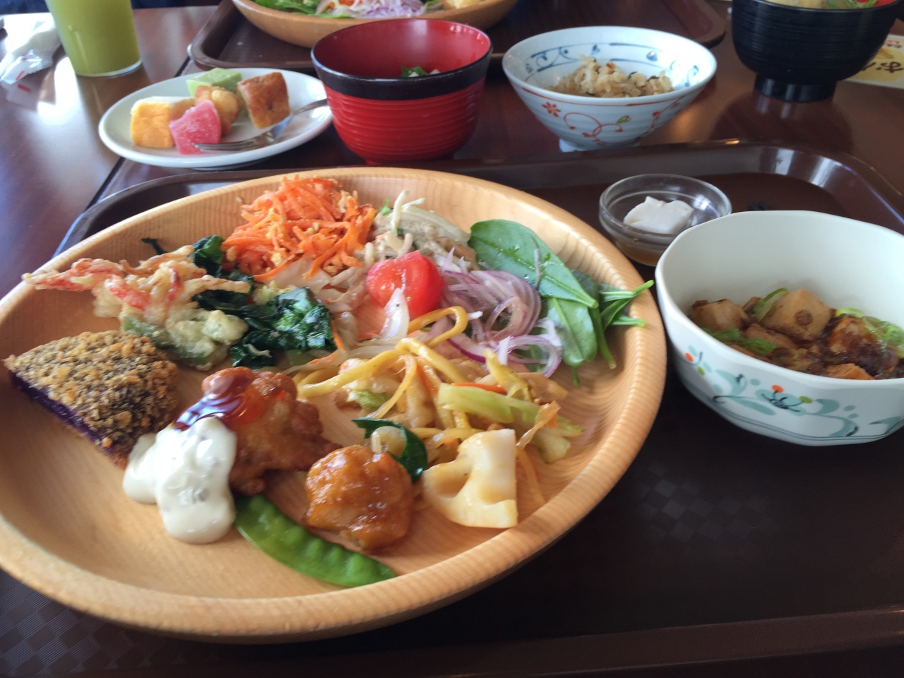 ゆいレール県庁前駅を降りてすぐのリウボウの9階にあります。沖縄県産の野菜がたっぷり味わえ、沖縄そばや豚しゃぶ、天ぷらそしてデザートも充実しています。全種類は食べきれませんでした。特に野菜は見たことも食べたこともないものが味わえるのでおすすめです。