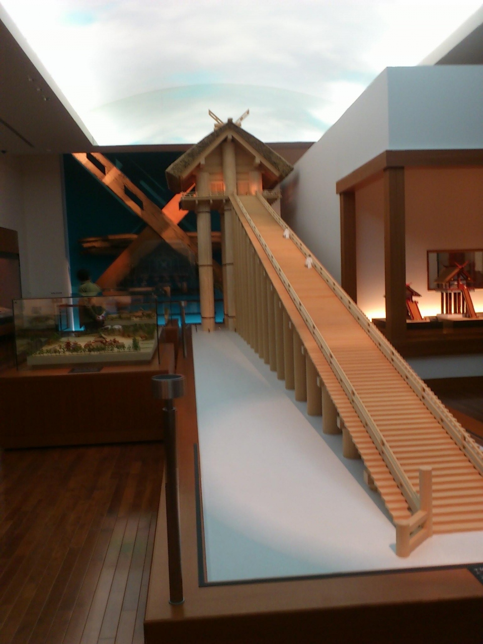 出雲大社の近くにある県立の博物館です。出来て時間が経っていないようで、近代的な綺麗な建物です。常設展と特別展の2本立てで、特別展は別料金になります。案内の方の制服が縄文式の衣服の感じを取り入れています。出雲大社の本殿の模型が置いてあるのと、国宝の銅鐸が何個も展示されていて圧倒されました。