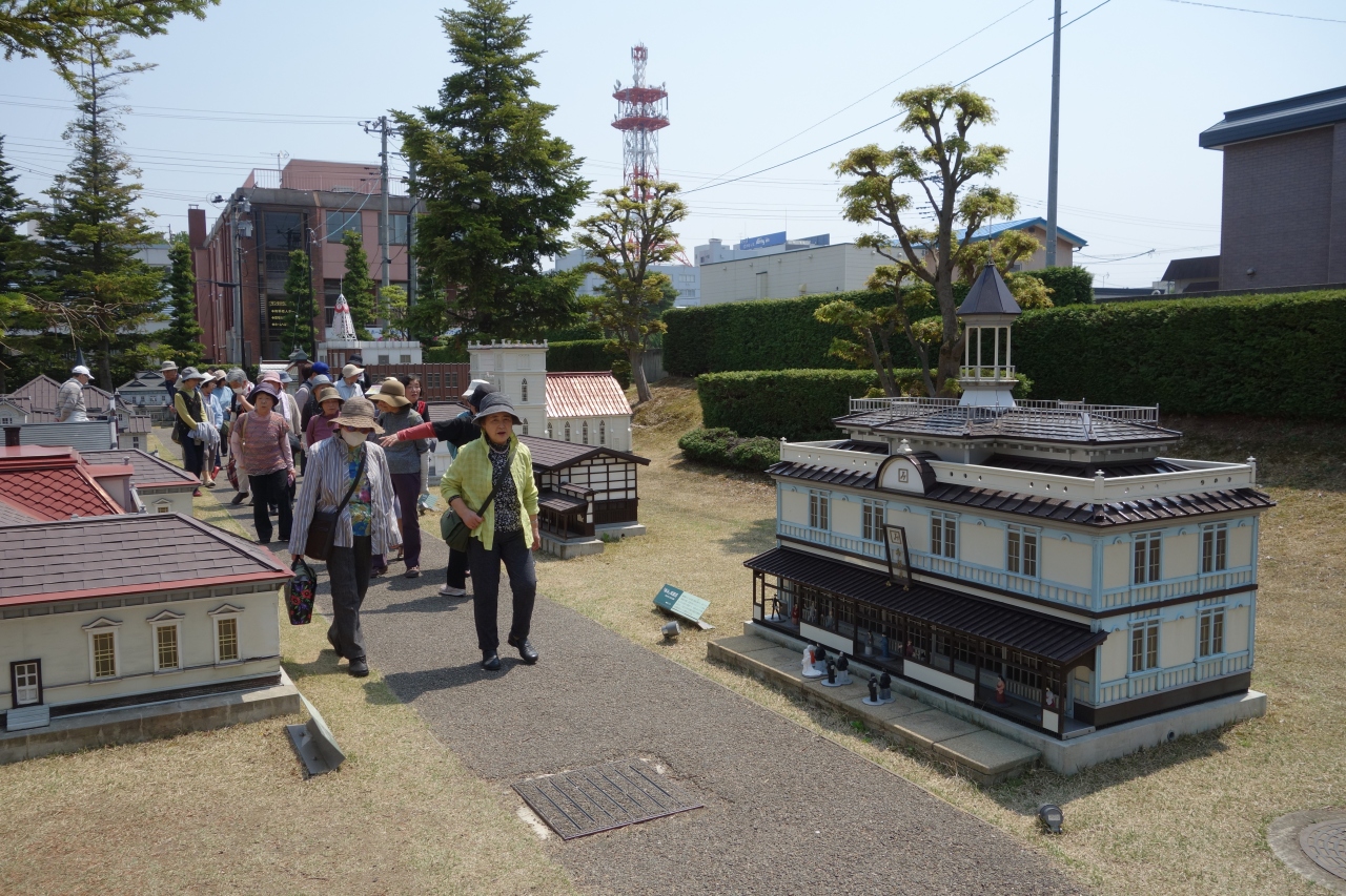 旧市立図書館と旧東奥義塾外人教師館の間の庭園に弘前市内にある近代建築のミニチュア(1/10)が並んでいます。弘前の名所として知られた近代建築もあれば、見たことのないものも……と思ったら、すでに消失した近代建築もここに再現されているのですね。見事なものもあり、これが現存していたらなあ……と惜しむ気持になりました。