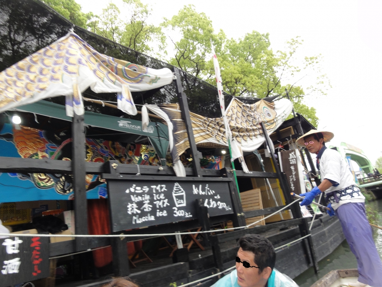 柳川川下りは水郷を巡るものです。急流を下るものではありません。水郷には小さな橋が幾つもあり、その度に姿勢を低くしなければなりません。お堀なので波も少なく、豪雨じゃない限りは運行、小雨交じりの中をビニール合羽を着て出発しました。歌の上手な船頭さんでたっぷりのお喋り、歌で70分が短く感じました。途中に売店もありました。*西鉄天神から電車+川下り+食事のお得なセット券もあります。柳川で食事をするならお得です。