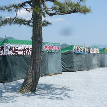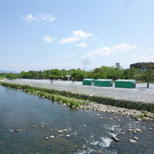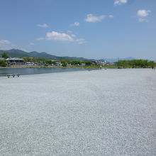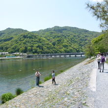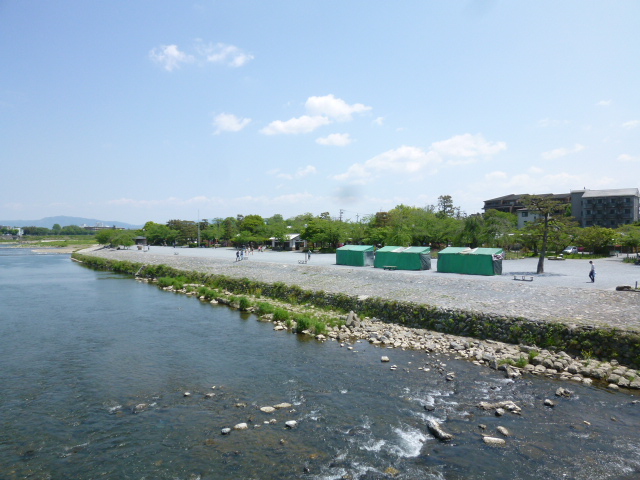 今日は嵐山をぶらりしています。ここ嵐山公園は春は桜、秋は紅葉として有名で沢山の観光客で一杯になりますが、桜の時期が終わった今日は何もなく殺風景です。渡月橋を渡りながら公園を眺めていると青いテントが見えます。なんだか品が悪いです。公園内へ行き、なんだかなぁーと見ると閉じている露店です。もっと京都の観光地らしく整備して欲しいものです。しかし静かに流れる桂川を身近に見れるのはいいですね。