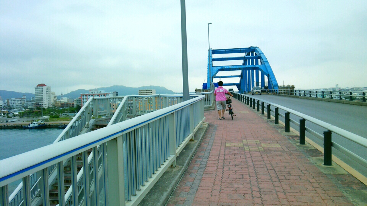 4月末は工事中でした。しばらく続くみたいです。用事があって自転車で往復しましたが、大変なようで結構楽しめました!渡った先は開発途中の埋め立て地。橋の下は猫島としてちょっと有名です。自転車で下るときの風が気持ちよかったです。