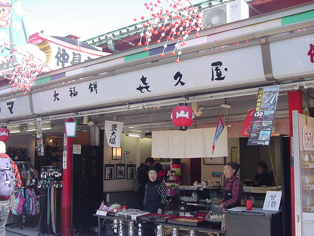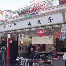 東京を代表する観光地、浅草寺の門前にある「仲見世商店街」に立地する大福餅のお店です。店頭ではさまざまなバリエーションの大福とともに、甘酒なども販売しています。大福は宮城産の餅米と、十勝産の小豆を使っていて、素材にもこだわっています。