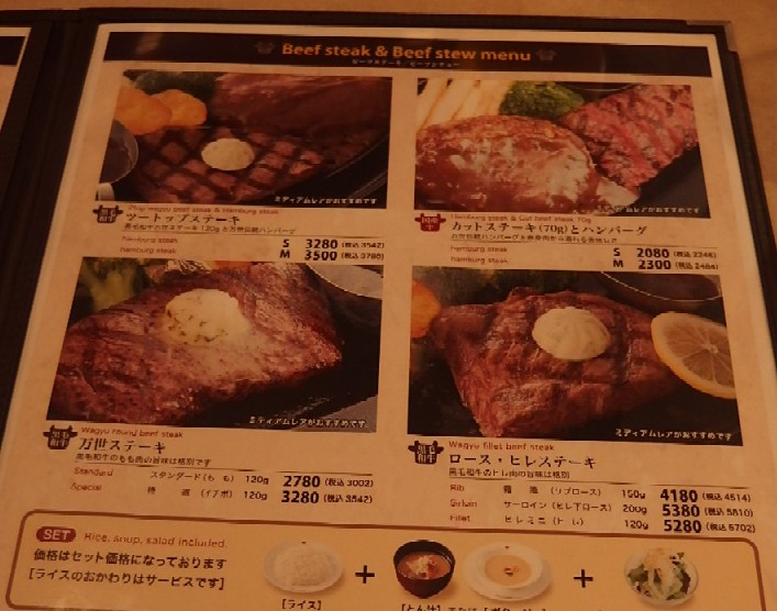 焼き加減はミディアムレアで注文!・・・万世にしては料理の提供が早いのは駅ビルだからか!?