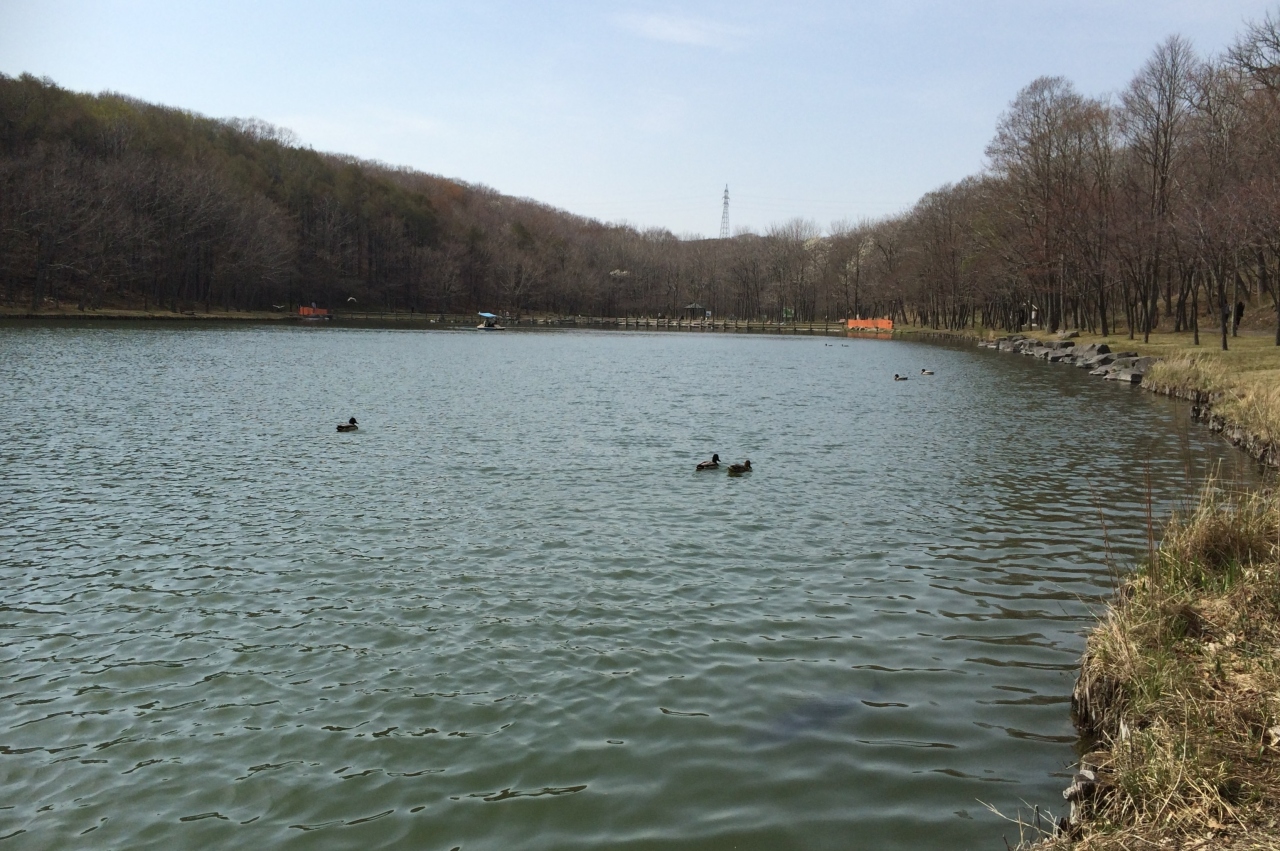 園内には大きな金太郎池があって、ボート乗りを楽しむことが出来ると同時にカモメや鴨などの憩いの場になっているようです。