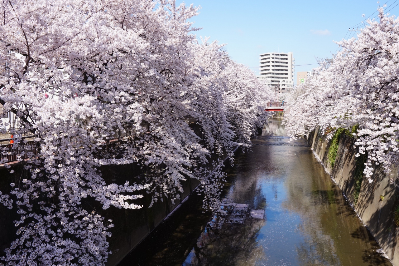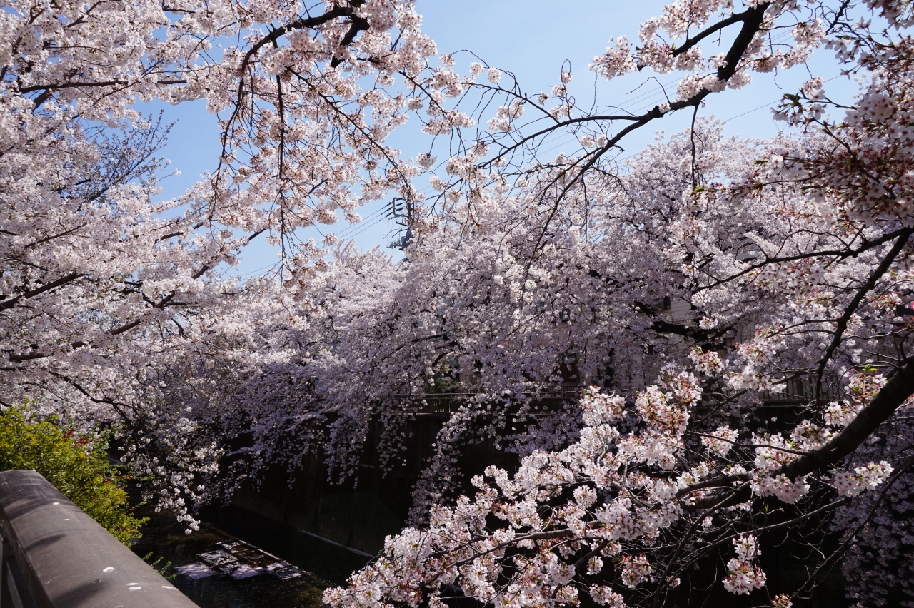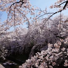 川面へ向かって滝のようにしだれている並木の様は圧巻です。