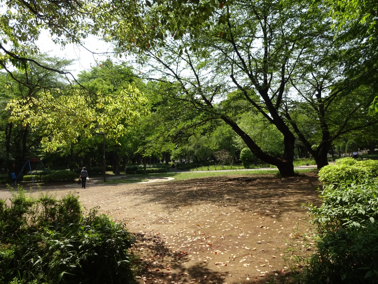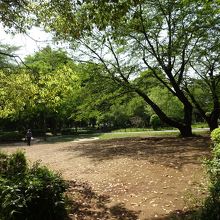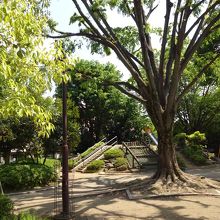 遊具のある部分の他はゆったりと木々が残り、遊歩道のような趣です。