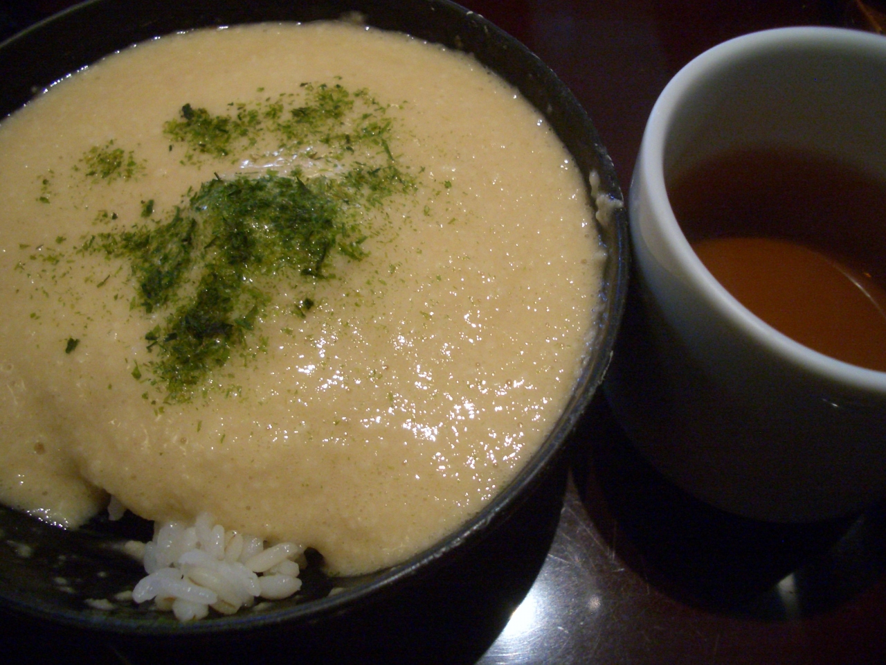 欲張って麦飯を少なめとろろ多めにするより、丁度良いバランスで盛った方が美味しいと感じました。女性店員さんが麦飯にとろろをかけた上にあんかけをかけたのを渡してくれました。お腹一杯になった頃、ゴマ風味のとろろが提供されたので、それを含めて4杯食べました。とろろはお腹に入ってから膨れる気がするので、ゆっくりよく噛んで食べた方が後で苦しまないと思います。