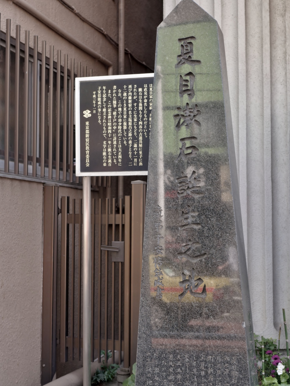 早稲田駅前交差点から夏目坂を進むとすぐ左手に記念碑がありました。