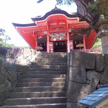 出雲大社からバスで約20分です。出雲大社と日御崎を結ぶバスは1時間に1本しかないので、帰りのバスの時間をチェックしておくと良いと思います。バス停を降りてすぐのところに鳥居があります。境内を進むと朱塗りの立派な本殿が現れます。上の宮と下之宮の2つの建物があります。日本の夜を守る神社です。